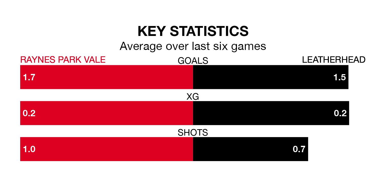 Leatherhead, meanwhile, are below average scorers, with 1.6 goals per game, compared to a league average of 1.7. They have conceded 0.8 goals per game.