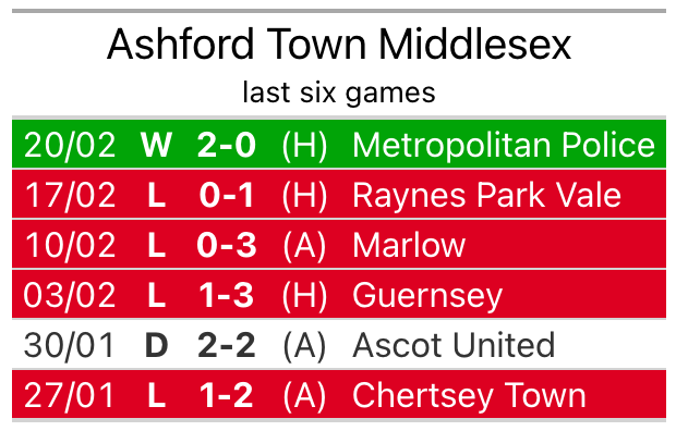 With 31 goals in 27 games so far this season, Ashford Town Middlesex are the league’s third-lowest scorers with 1.1 goals per game. And they are conceding at an average rate, letting in 45 goals at a rate of 1.7 per game.