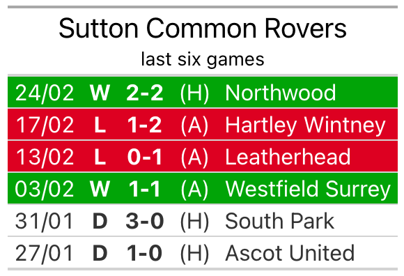 Their last meeting was on November 18, when Sutton Common won 4-1 away.