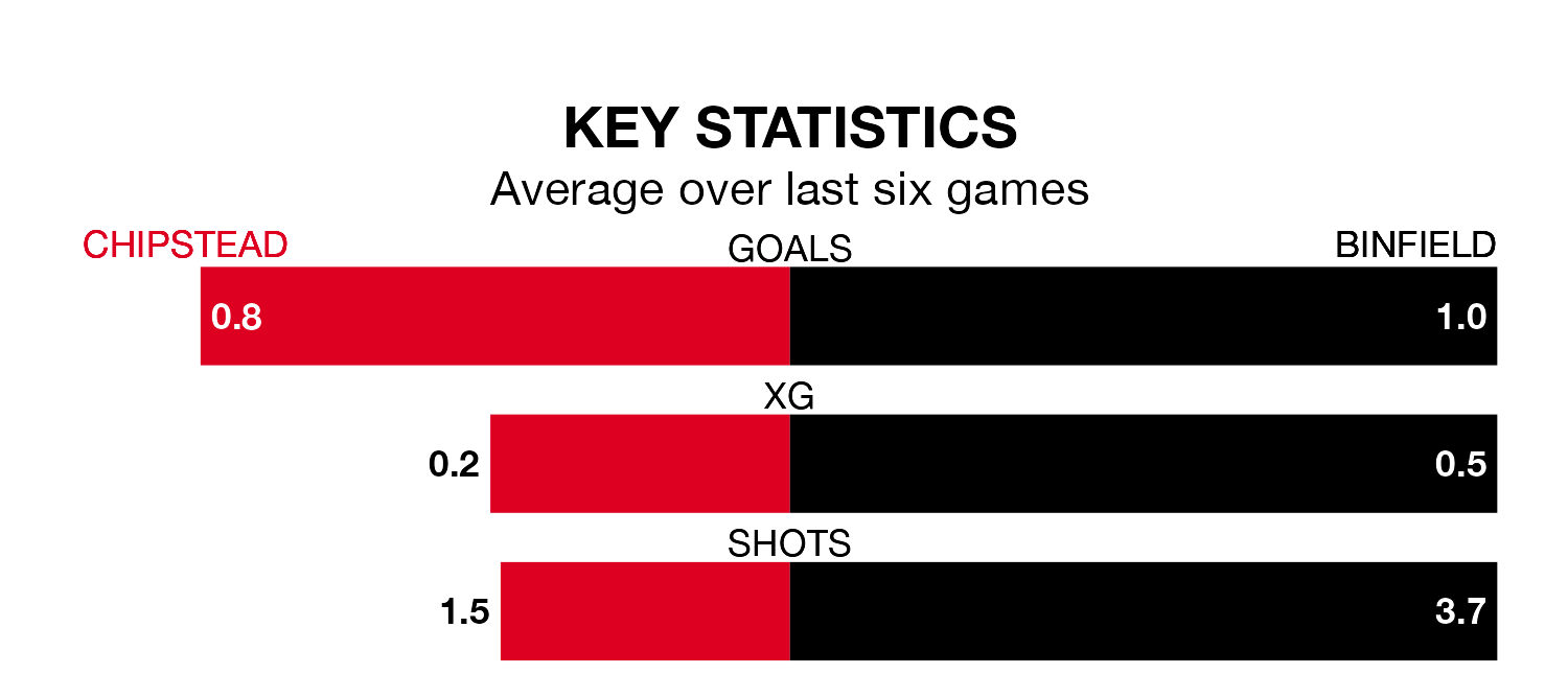 With no wins and three draws over that period, Binfield’s form is slightly worse – they have taken three points from 18, compared to the hosts’ five.