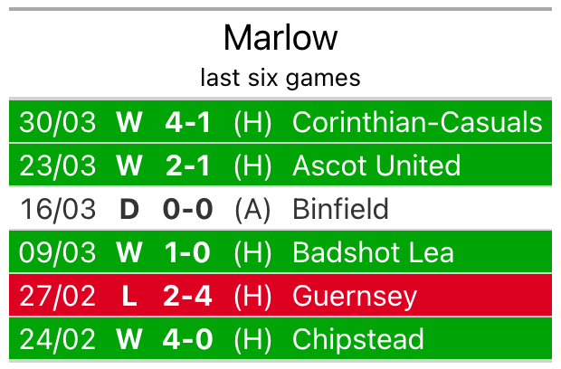 With four wins and a draw over that period, Marlow’s form is better – they have taken 13 points from 18, compared to Thatcham’s eight.