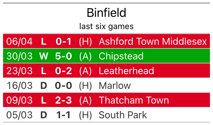 With a win and two draws over that period, Binfield’s form is worse – they have taken five points from 18, compared to Badshot Lea’s 10.
