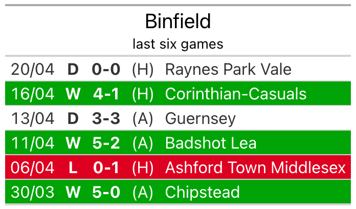 Binfield, meanwhile, drew their last match, 0-0 against Raynes Park Vale.