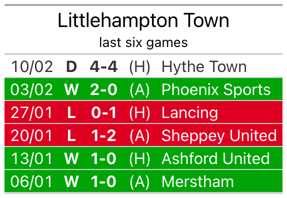 Littlehampton’s last match was on February 10, a 4-4 draw against Hythe Town.
