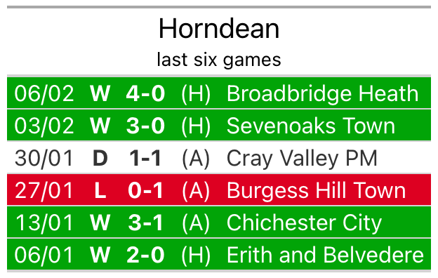 Horndean beat Broadbridge Heath 4-0 last time out, on February 6.