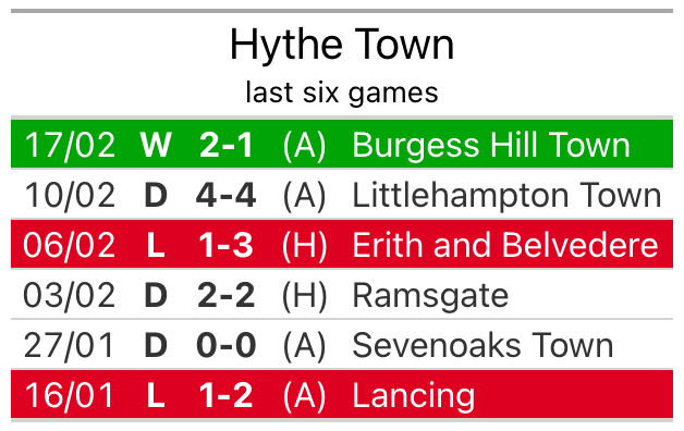 They face a Hythe side who picked up a win in their last match, a 2-1 victory against Burgess Hill Town, and who sit 10th in the table.
