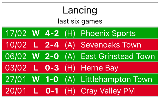 Lancing beat Phoenix Sports 4-2 last time out, also on February 17.