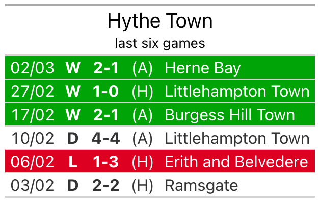 They face a Hythe side who picked up a win in their last match, a 2-1 victory against Herne Bay, and who sit ninth in the table.