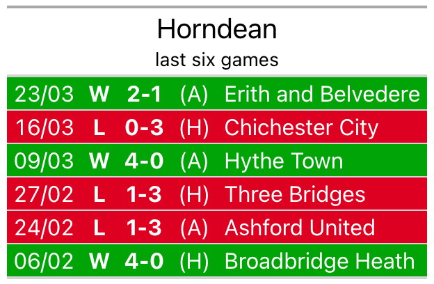 With three wins and three losses over that period, Horndean’s form is worse – they have taken nine points from 18, compared to the home side’s 12.