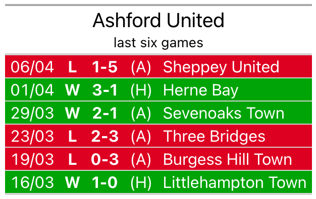 Their last meeting was on November 25, when Ashford won 2-1 away.