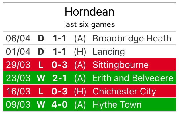 Horndean are 15th in the table after 30 games, of which they have won 10 and drawn six, earning 36 points.
