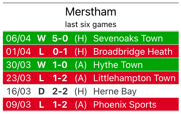 With two wins and a draw over that period, Merstham’s form is slightly worse – they have taken seven points from 18, compared to the home team’s eight.