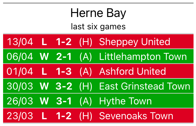 Herne Bay lost 2-1 against Sheppey United last time out, also on April 13.