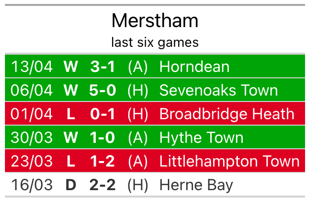 The visitors have drawn two and lost four of their last six fixtures, while Merstham have three wins and a draw.