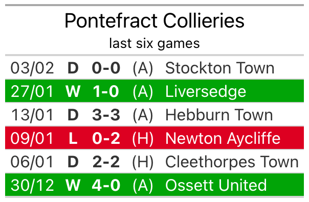 Pontefract Collieries are in mixed form in the Northern Premier League Division One East, with two wins and three draws from their last six games.