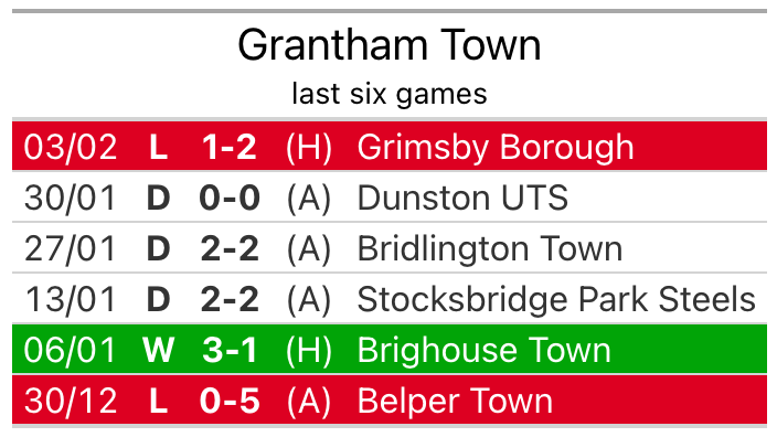 Grantham are 19th in the table after 26 games, of which they have won four and drawn eight, earning 20 points.