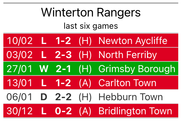 Winterton lost 2-1 against Newton Aycliffe last time out, on February 10.
