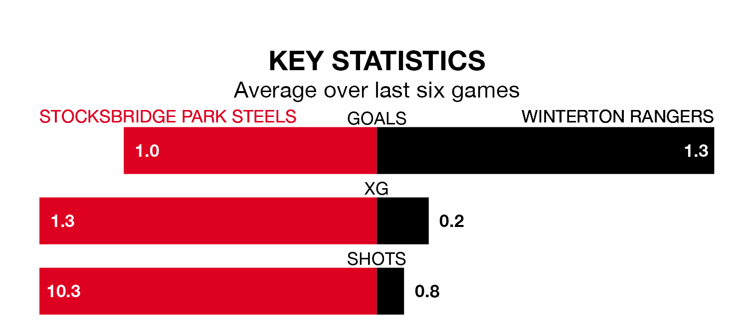 With a win and a draw over that period, Winterton’s form is worse – they have taken four points from 18, compared to the Steels’s eight.