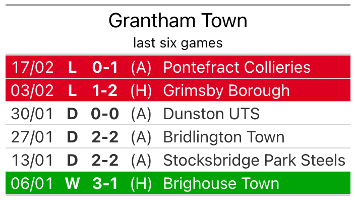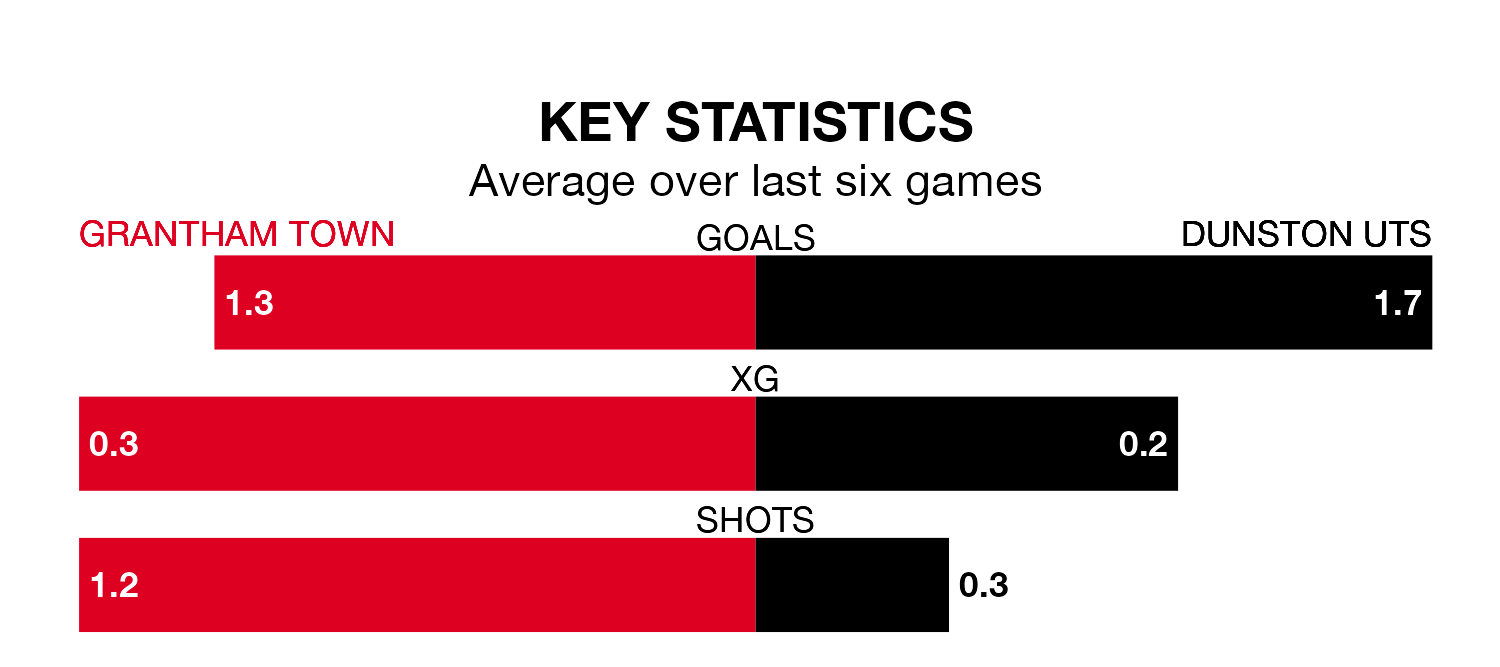 Grantham, meanwhile, are below average scorers, with 1.3 goals per game, compared to a league average of 1.5. They have conceded 2.2 goals per game.