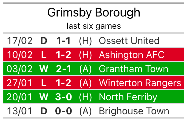Grimsby drew 1-1 with Ossett United last time out, also on Saturday.