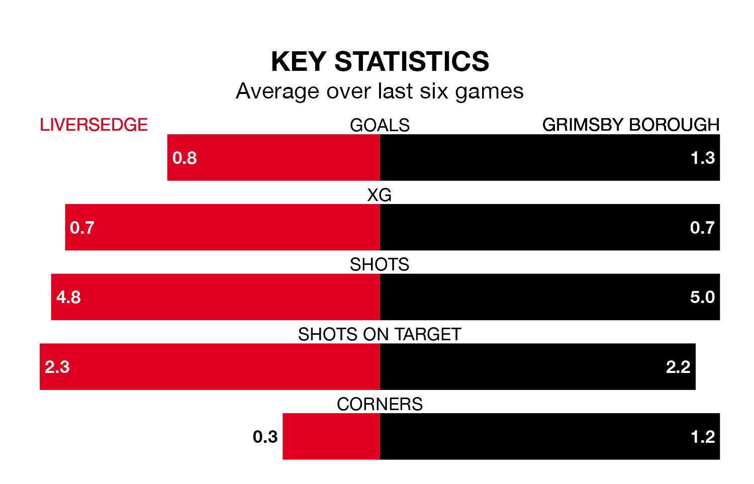Liversedge are also below average scorers, with 1.4 goals per game, compared to a league average of 1.5. They have conceded 1.3 goals per game.