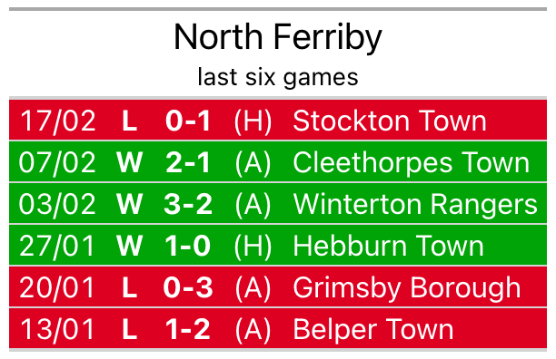 In their last league match, on Saturday, North Ferriby lost to Stockton Town 1-0 at home.