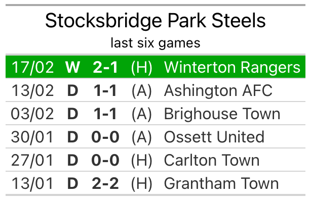 They face a Stocksbridge side who picked up a win in their last match, a 2-1 victory against Winterton Rangers, and who sit 17th in the table.