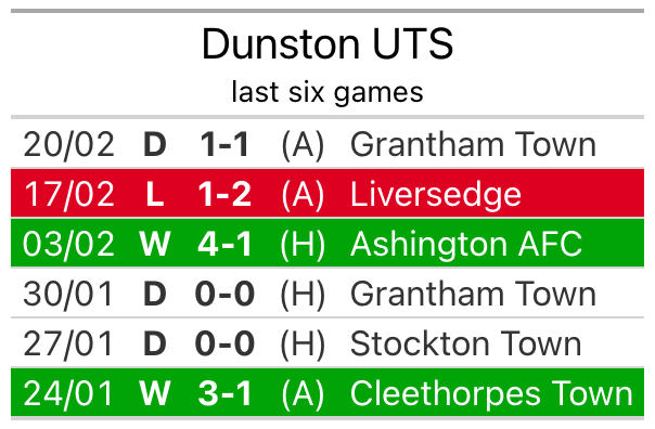 Dunston UTS’s last match was on Tuesday, a 1-1 draw against Grantham Town.