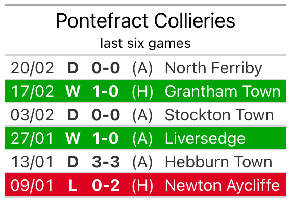 Pontefract Collieries drew 0-0 with North Ferriby last time out, also on Tuesday.
