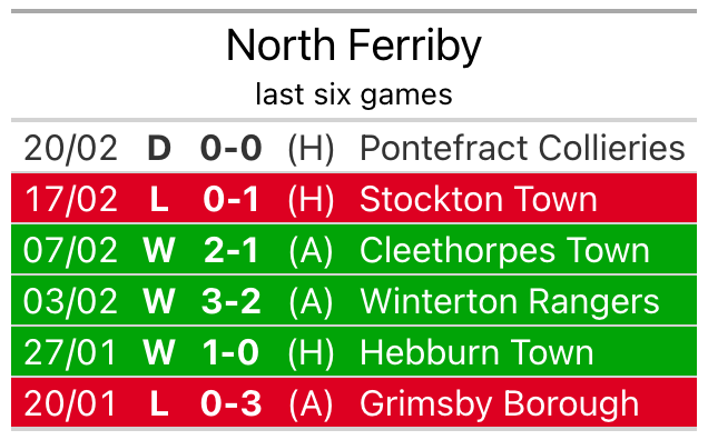 North Ferriby drew 0-0 with Pontefract Collieries last time out, also on Tuesday.