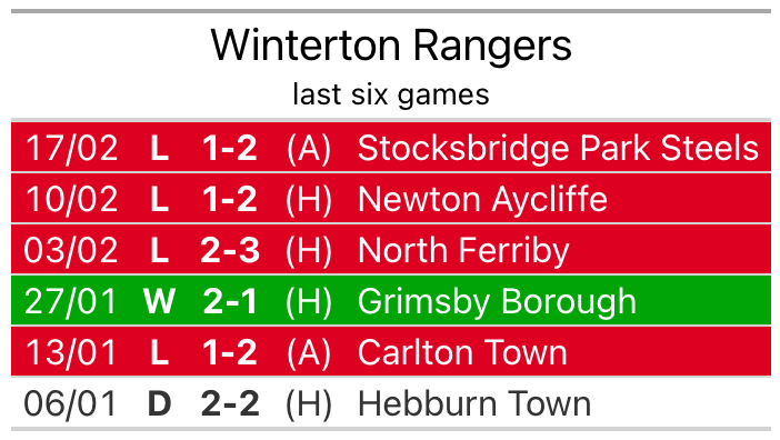 Winterton’s struggles have left them with just four points from their last six Northern Premier League Division One – East matches, while their opponents have earned seven from a possible 18.