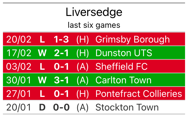 Liversedge lost 3-1 against Grimsby Borough last time out, on Tuesday.