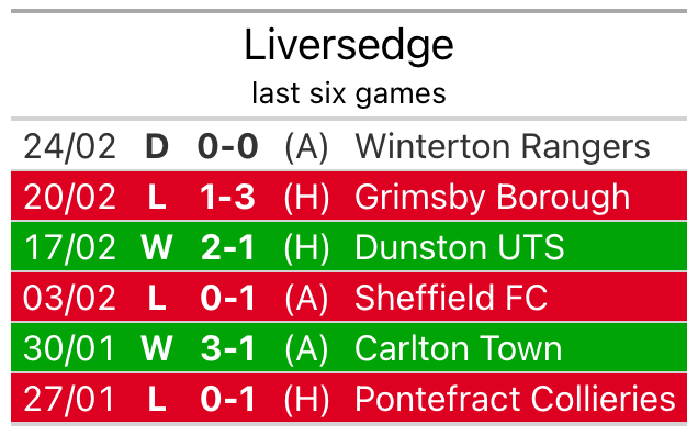 Liversedge’s last match was on February 24, a 0-0 draw against Winterton Rangers.