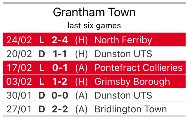 Grantham lost 4-2 against North Ferriby last time out, also on February 24.