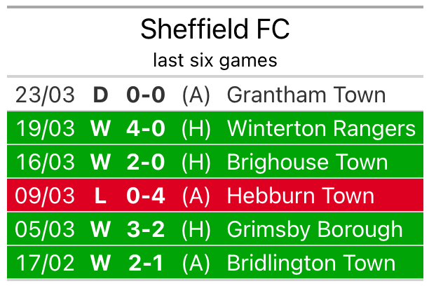 Sheffield FC are in good form in the Northern Premier League Division One East, with four wins and a draw from their last six games.