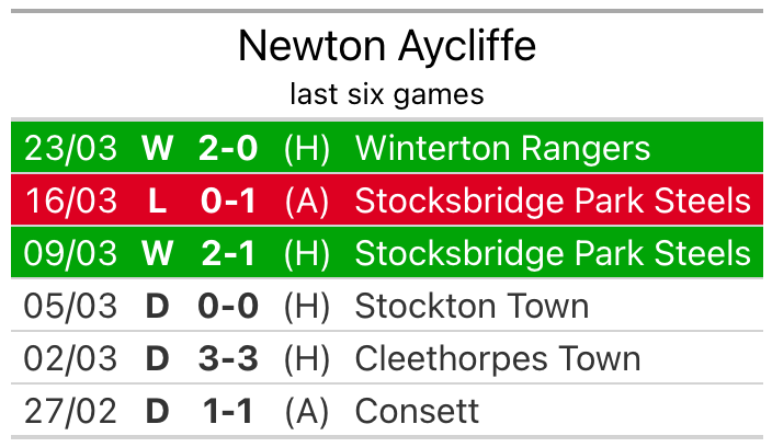 Newton Aycliffe are also above average scorers, with 1.6 goals per game, compared to a league average of 1.5. They have conceded 1.5 goals per game.