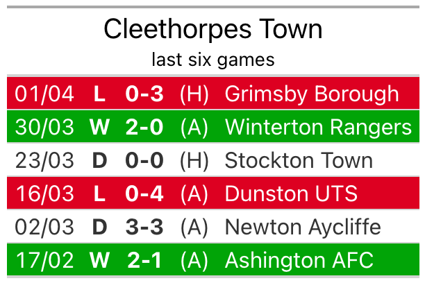 Cleethorpes’s last match was on Monday, a 3-0 loss against Grimsby Borough.