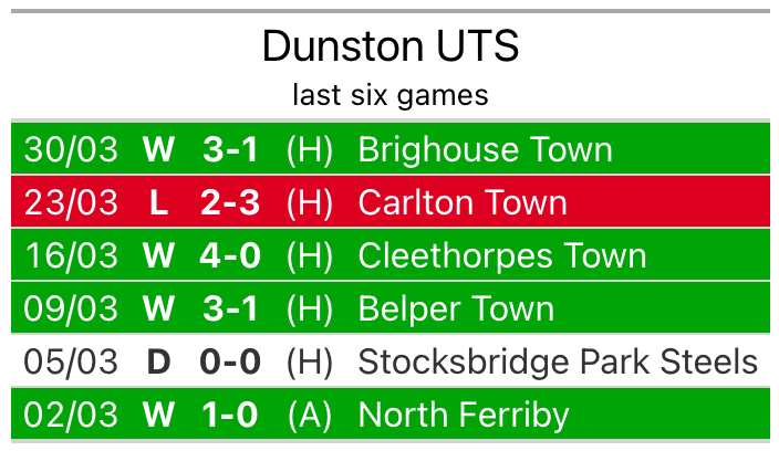 Dunston UTS’s last match was on Saturday, a 3-1 win against Brighouse Town.