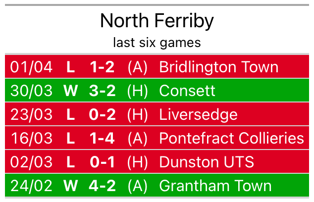 North Ferriby are in disappointing form in the Northern Premier League Division One East, with two wins and four losses from their last six games.