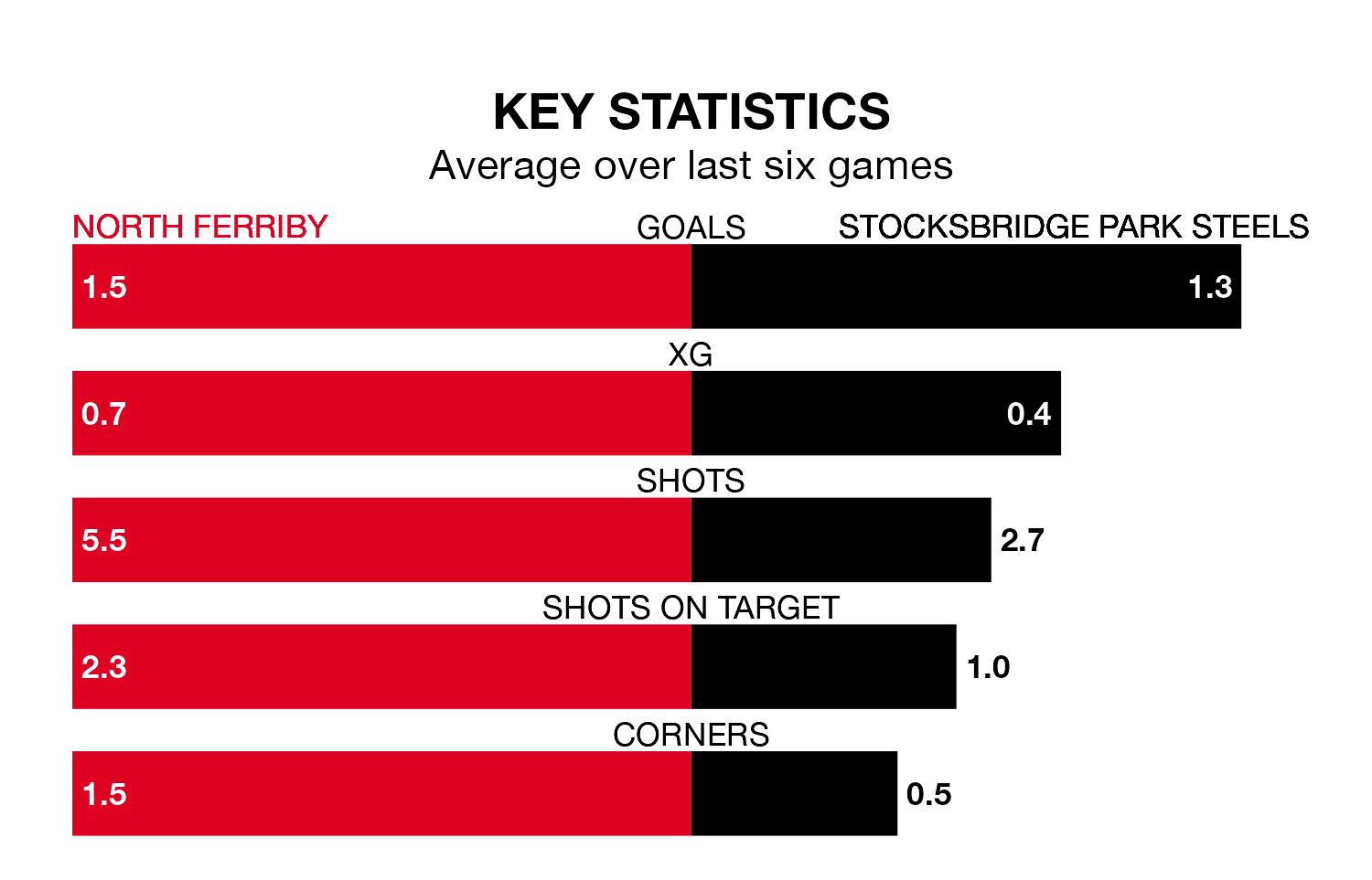 With three wins and three losses over that period, Stocksbridge’s form is better – they have taken nine points from 18, compared to North Ferriby’s six.