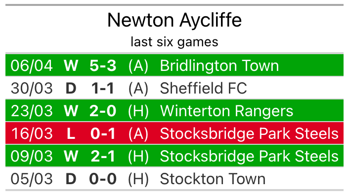 Newton Aycliffe’s last match was on April 6, a 5-3 win against Bridlington Town.