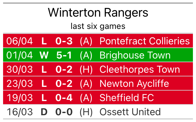 Winterton’s last match was on April 6, a 3-0 loss against Pontefract Collieries.