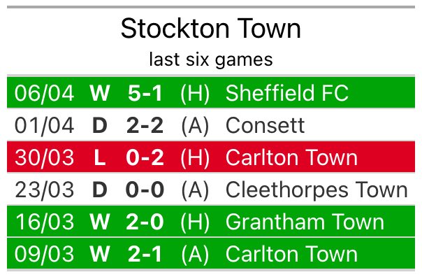 Stockton beat Sheffield FC 5-1 last time out, also on April 6.