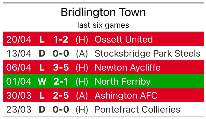 Bridlington lost 2-1 against Ossett United last time out, also on April 20.