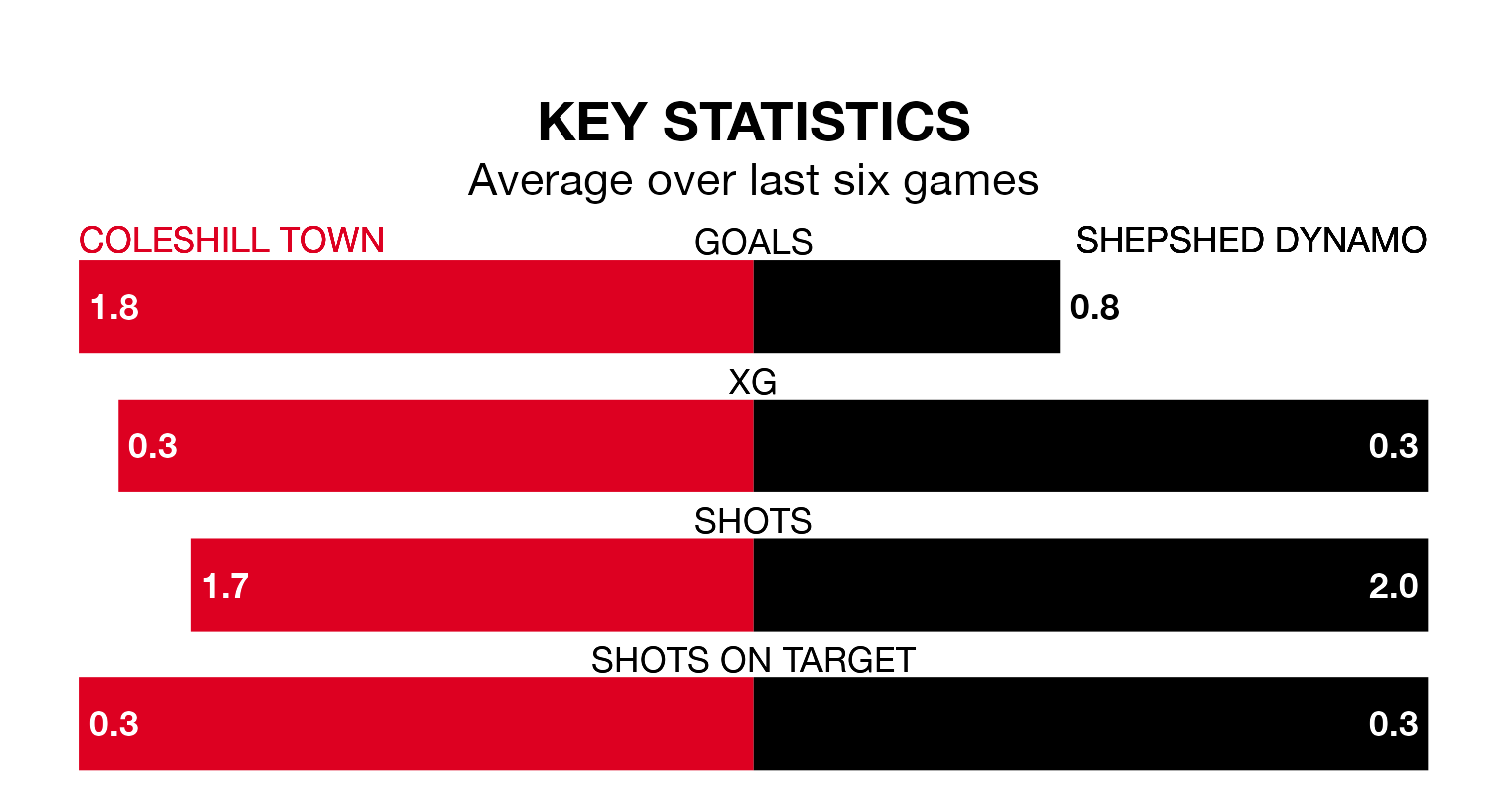 Coleshill, meanwhile, are above average scorers, with 1.6 goals per game, compared to a league average of 1.5. They have conceded 2.1 goals per game.