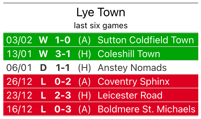 Lye’s last match was on February 3, a 1-0 win against Sutton Coldfield Town.