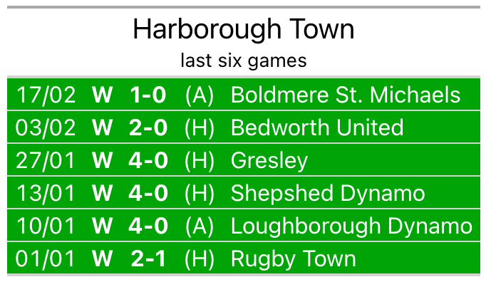 With five wins and one loss over that period, the away team’s form is worse – they have taken 15 points from 18, compared to Harborough’s 18.