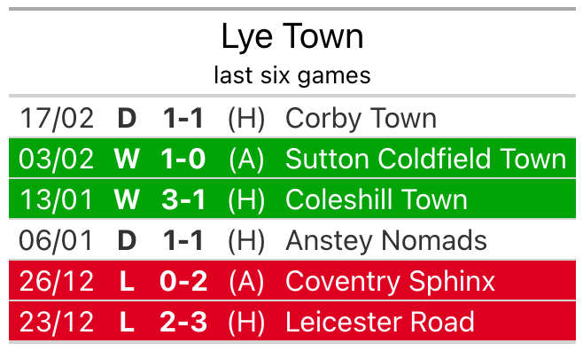 With two wins and two draws over that period, Lye’s form is slightly worse – they have taken eight points from 18, compared to Sporting’s 10.