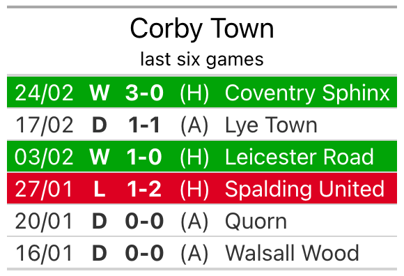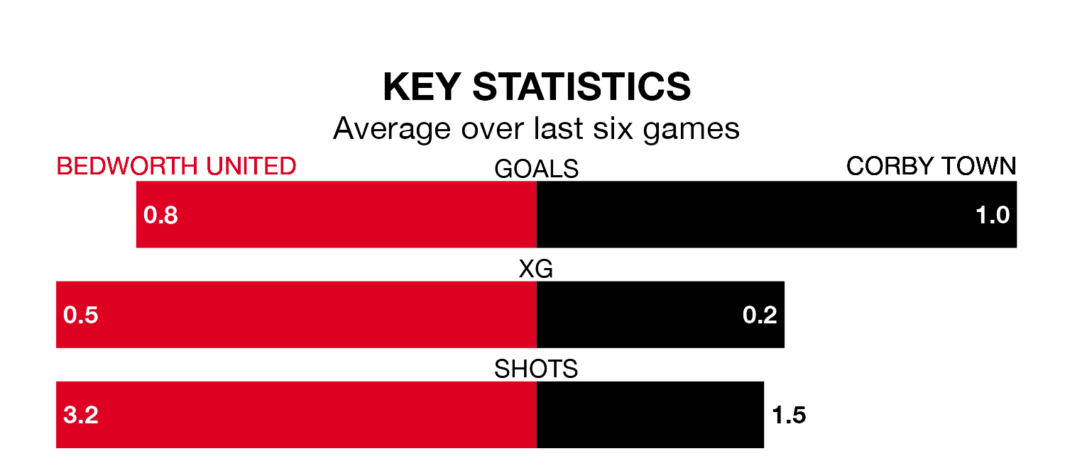 Corby, meanwhile, are above average scorers, with 1.9 goals per game, compared to a league average of 1.5. They have conceded 1.3 goals per game.