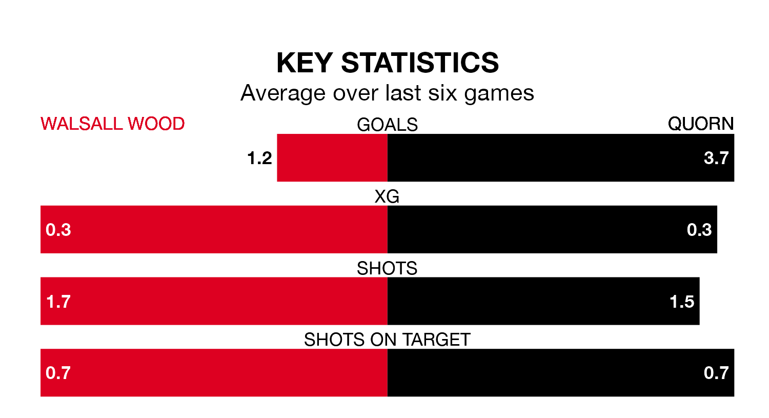 Walsall Wood, meanwhile, are below average scorers, with 1.5 goals per game, compared to a league average of 1.6. They have conceded 1.6 goals per game.